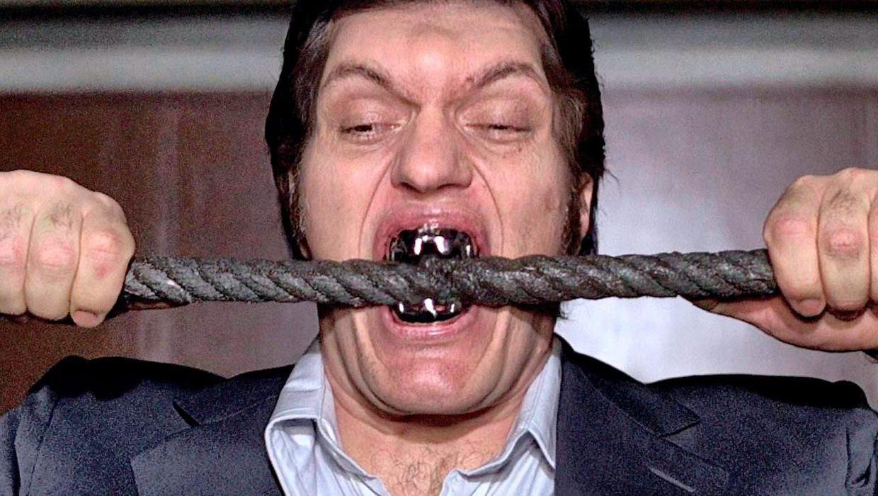 Richard Kiel, the towering actor best known for portraying steel-toothed villain Jaws in a pair of James Bond films, has died. He was 74. Kelley Sanchez, director of communications at Saint Agnes Medical Center, confirmed Wednesday that Kiel was a patient at the hospital and died. Kiel’s agent, Steven Stevens, also confirmed his death. Both declined to provide further details. The 7-foot-2-inch performer famously played the cable-chomping henchman who tussled with Roger Moore’s Bond in 1977’s “The Spy Who Loved Me” and 1979’s “Moonraker.” Bond quipped of the silent baddie: “His name’s Jaws. He kills people.” Kiel’s other memorable roles included bullying golf spectator Mr. Larson in “Happy Gilmore,” lethal Dr. Loveless’s assistant Voltaire in “The Wild, Wild West” and extraterrestrial Kanamit in “The Twilight Zone.” He also reprised the character of Jaws for several James Bond video games, and voiced the thug Vlad in the animated Disney film “Tangled.”
