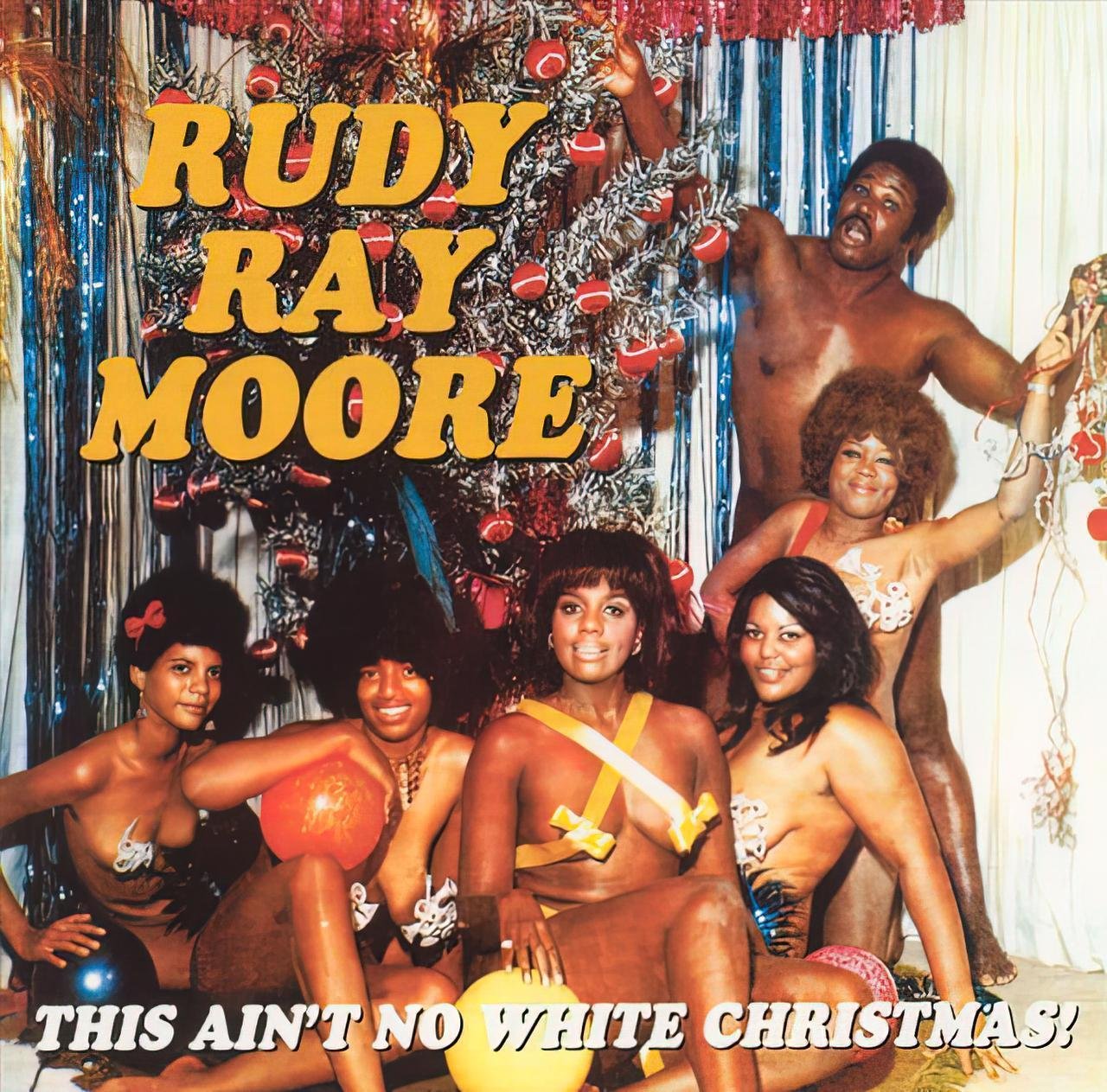 Rudy Ray Moore was a storyteller extraordinaire, a hilarious, low-down dirty man, and a legit trailblazer in the world of no-holds-barred, fuck-the-censors comedy. This classic, live Christmas album shows Moore in the 1970s form that cemented his late-night legacy. Side 1 is for early evening listening, when family and respectable friends might still be around. (The dirty stuff is for the flip.) The song “Merry Christmas, Baby” starts things off – a slow, dusty blues number bolstered by a wobbly but upright backing band. The song itself is PG, extolling the virtues of a caring partner and the joy of the season. Truth be told, it’s a warm and wonderful holiday song… read more about this epic album >