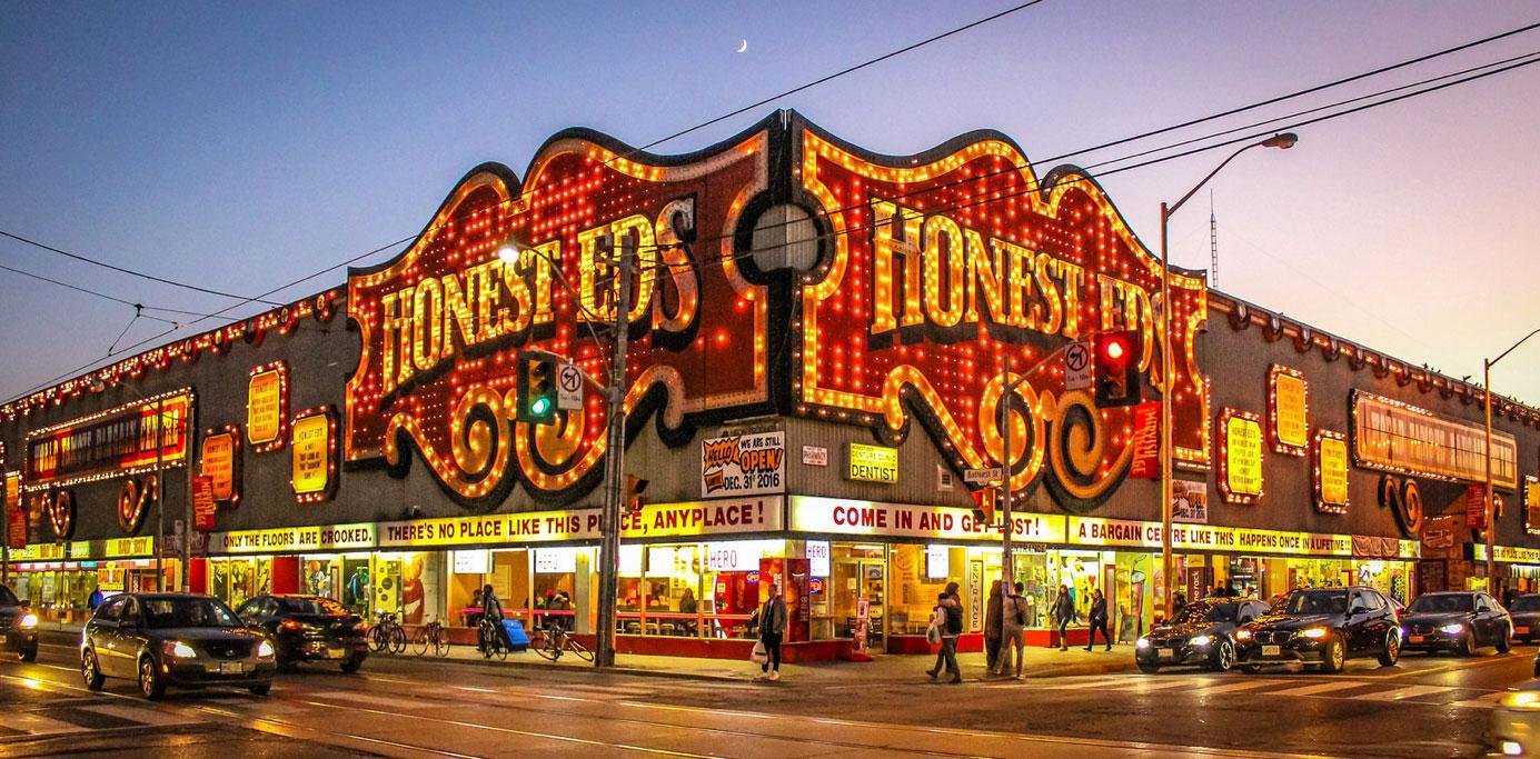 Honest Ed’s was located at 581 Bloor St W (between Bathurst St and Markham St) in the Mirvish Village neighborhood of Toronto. Ed Mirvish &