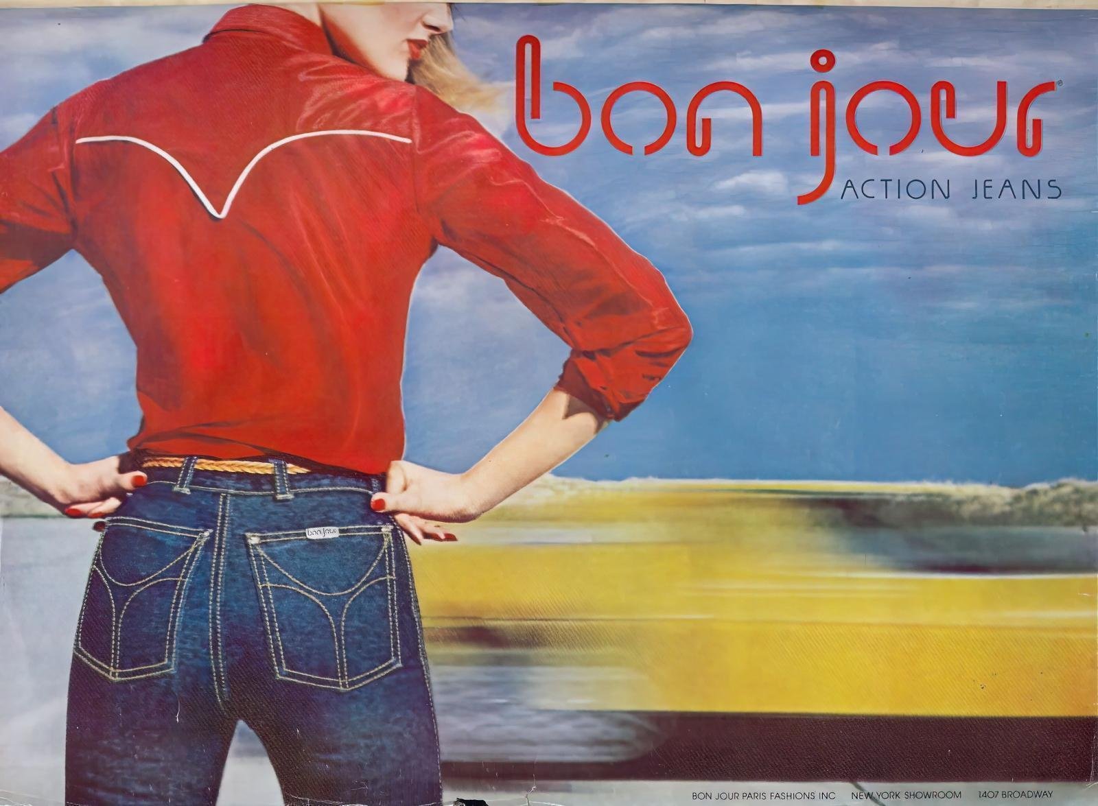 While today, Bonjour Jeans are but a footnote in the annals of ’80s fashion, they’re truly a case study in the American dream. Founded in 1972 by a Syrian immigrant who just a few years earlier emigrated to the United States with pennies to his name, Bonjour was the first to import low-cut French-style jeans into the United States. A decade later, Bonjour had $150 million in annual sales and was at the height of fashion as they led the way with the heavy acid wash trend supported by high style ad campaigns with hot models bending over to show just how flexible their denim was. Bonjour, my friends!