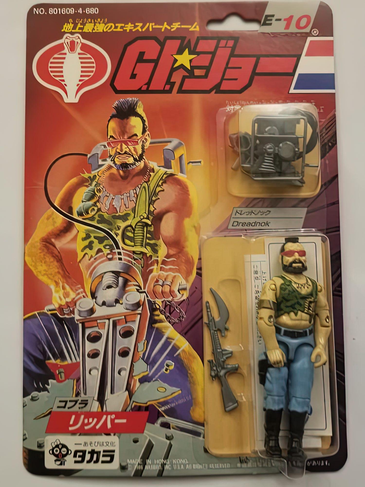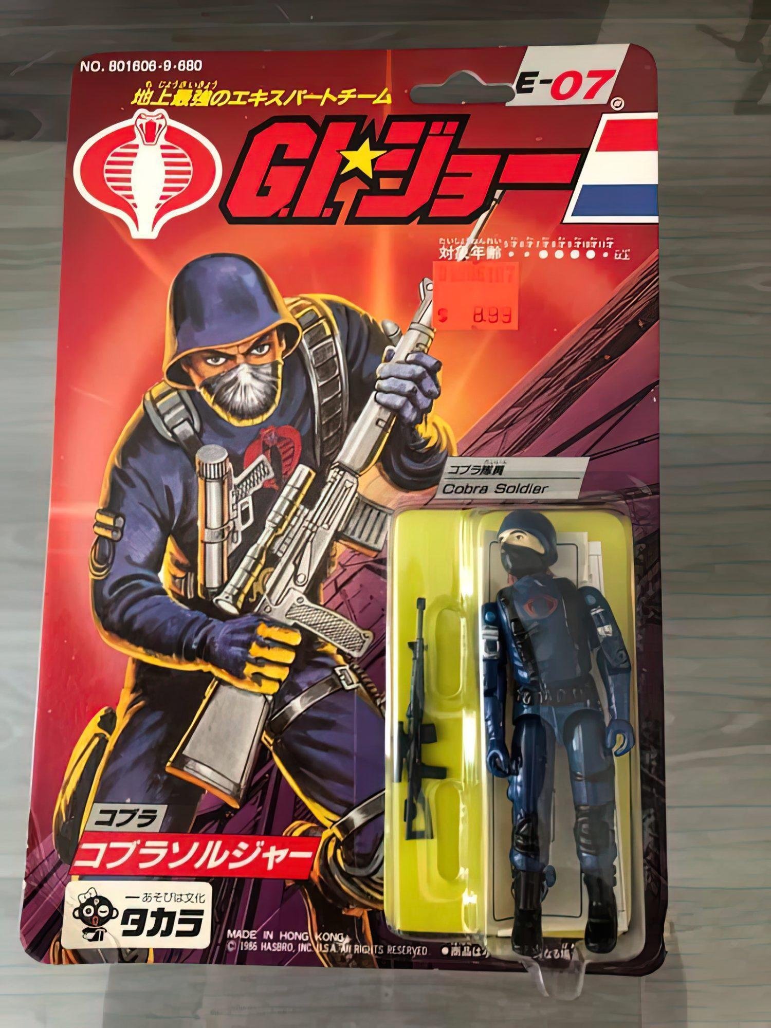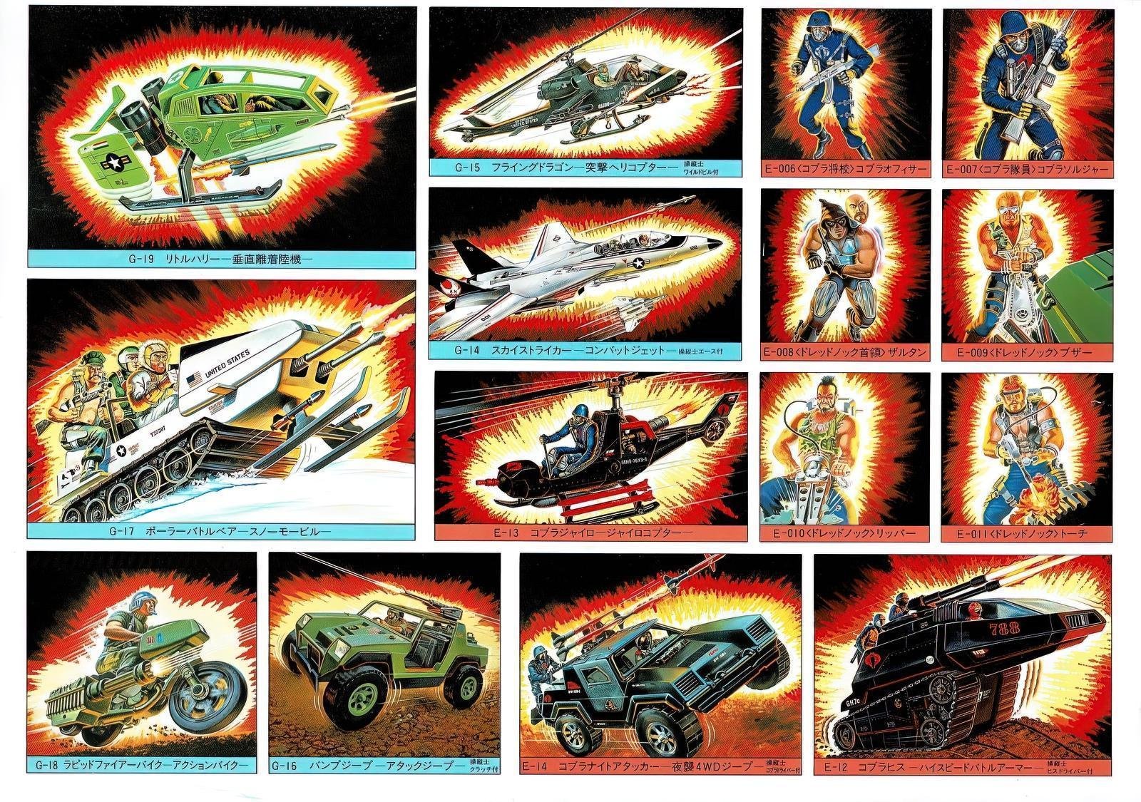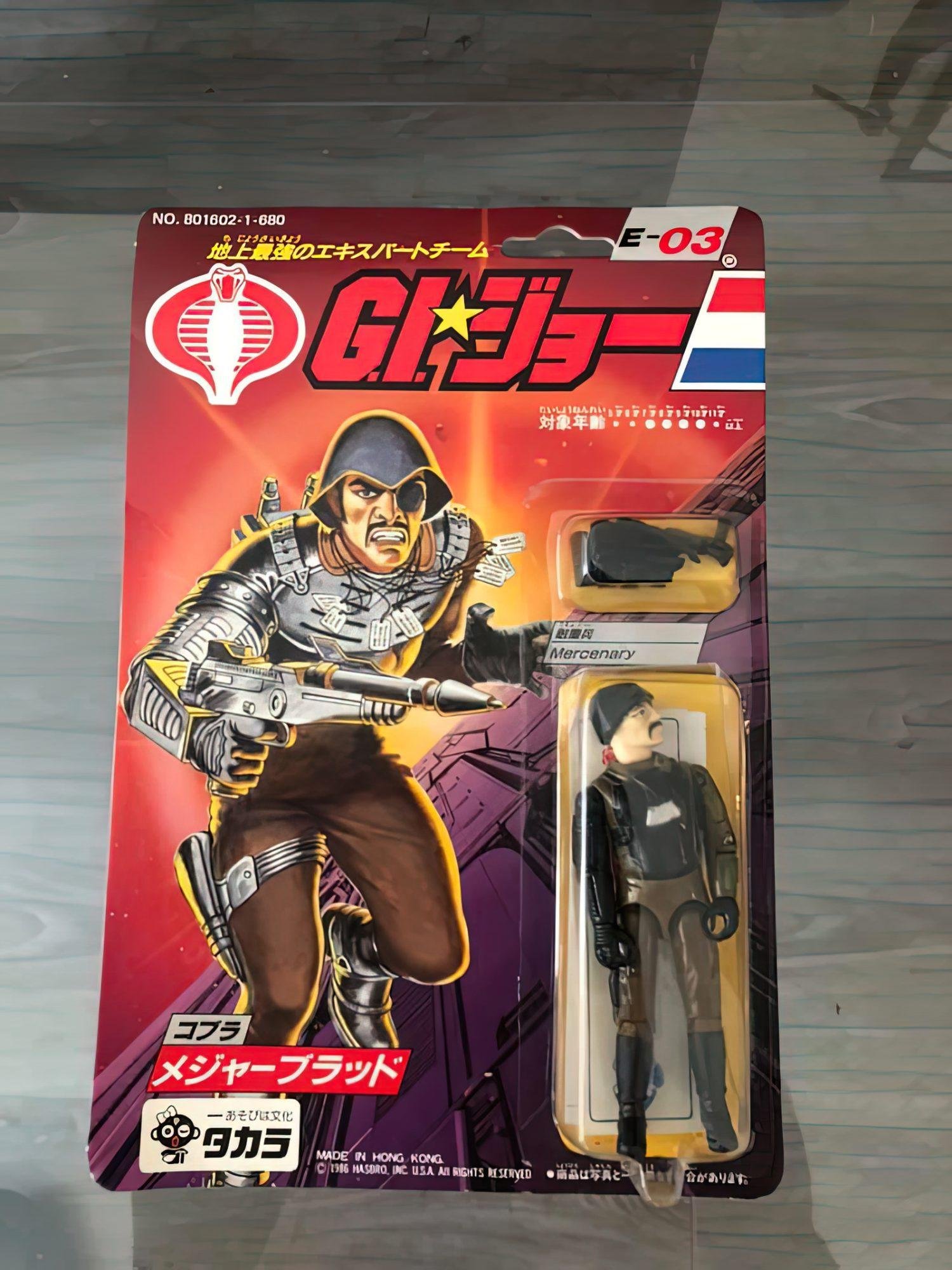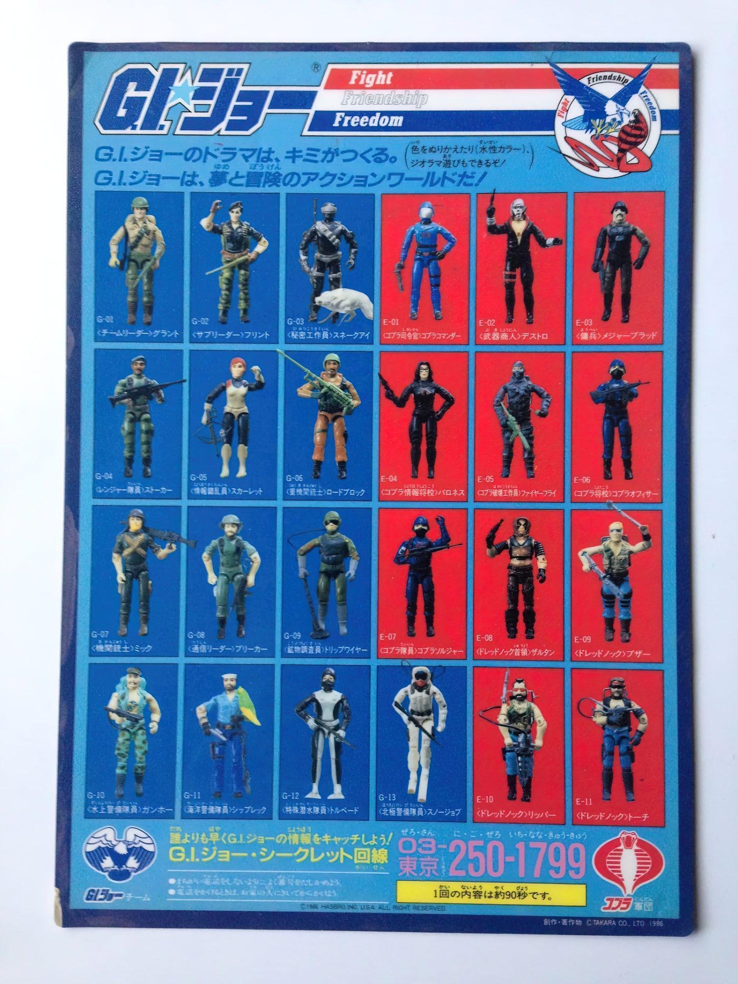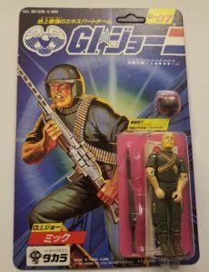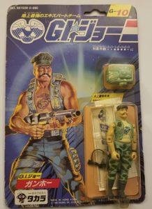 In Japan, Takara released 24 G.I.Joe & Cobra figures in 1986. These figures were just like their U.S. counterparts, but were offered on more vibrant card backs with a Japanese market-specific logo and a mix of Japanese Kanji and American English text. The subtext over the logo read “We are here to help . let’s go, let’s go, let’s go, let’s go.” followed by “The strongest extracurricular team on the ground.” There were however some differences here and there, one of which was that Zartan was offered as a single-carded figure that did not include his Swamp Skier vehicle.