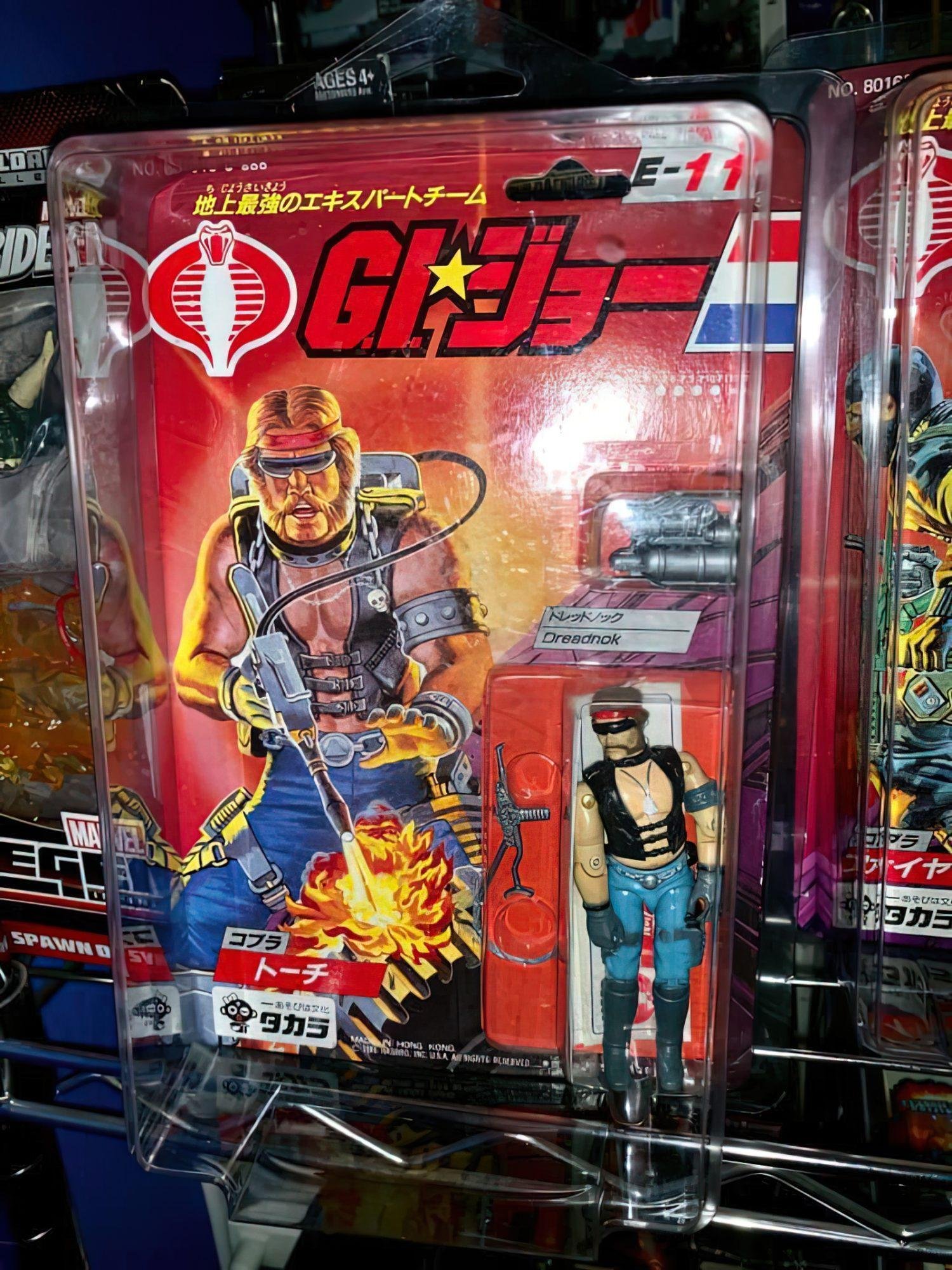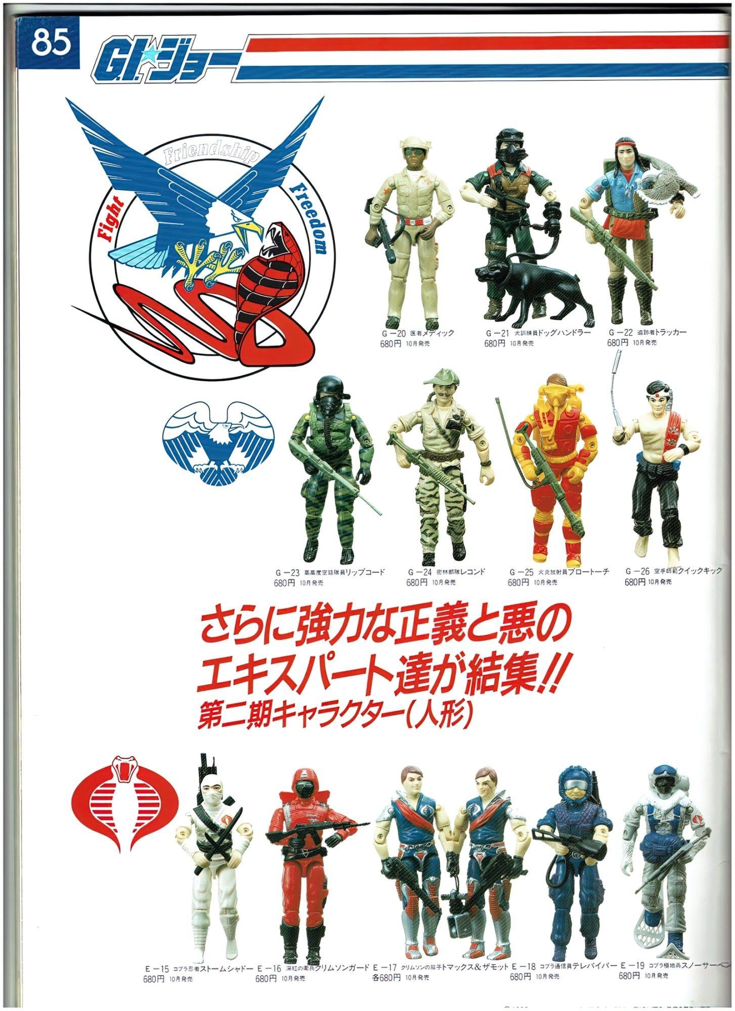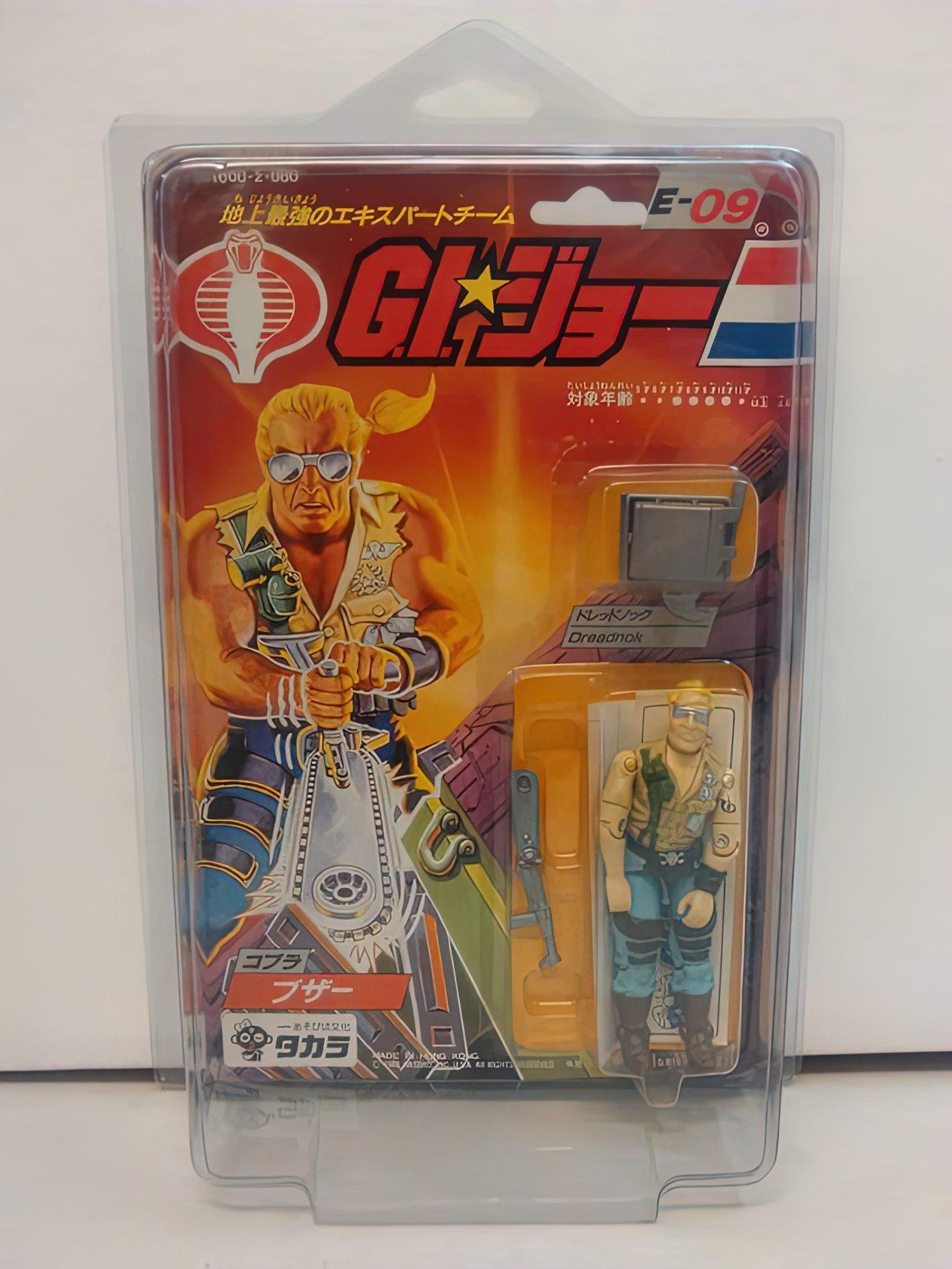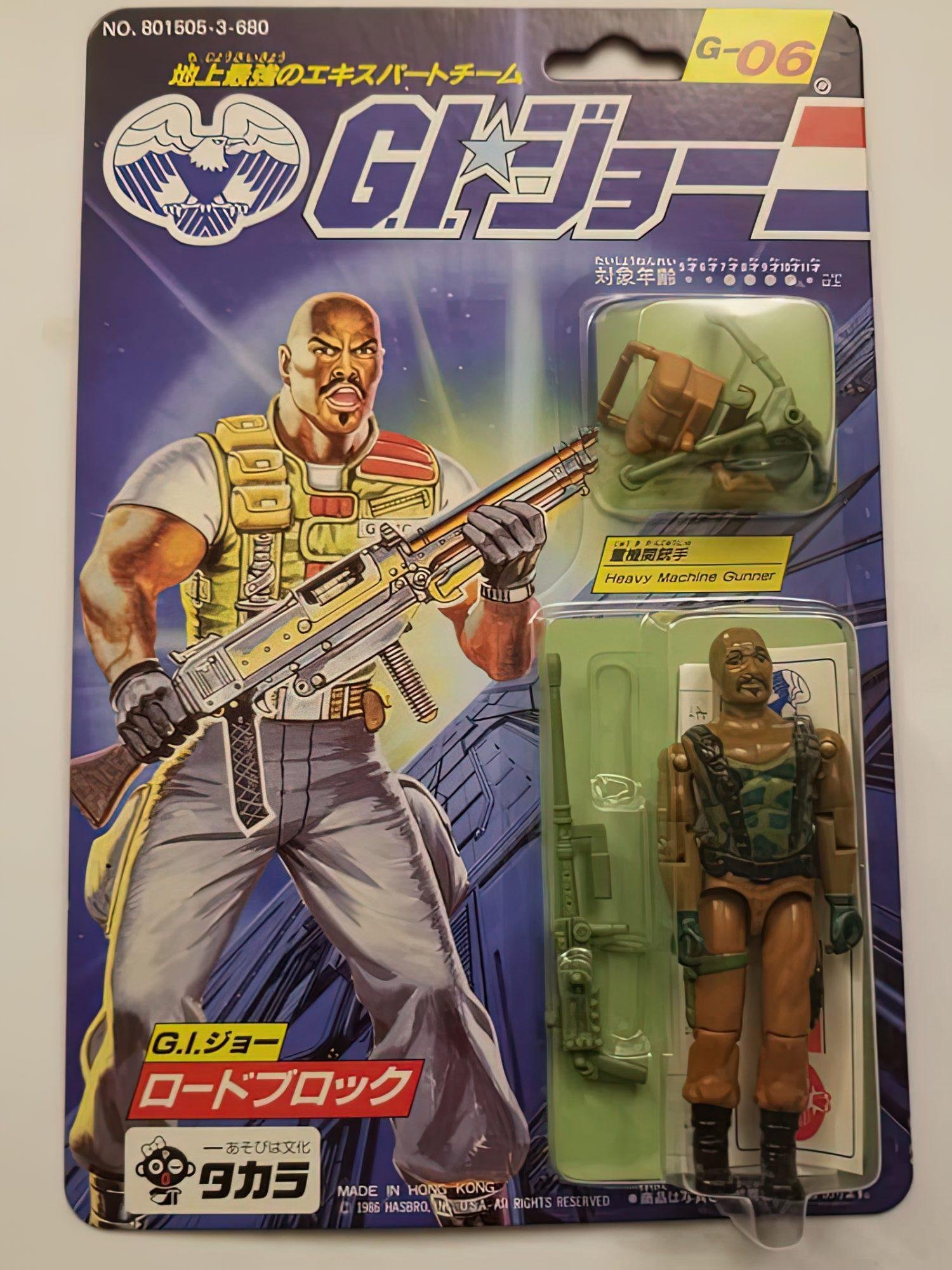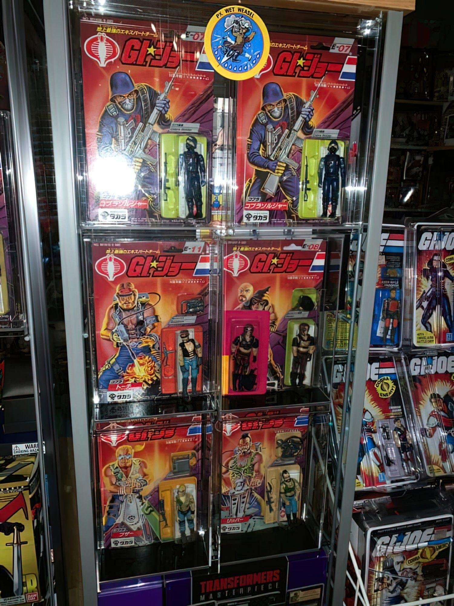 In Japan, Takara released 24 G.I.Joe & Cobra figures in 1986. These figures were just like their U.S. counterparts, but were offered on more vibrant card backs with a Japanese market-specific logo and a mix of Japanese Kanji and American English text. The subtext over the logo read “We are here to help . let’s go, let’s go, let’s go, let’s go.” followed by “The strongest extracurricular team on the ground.” There were however some differences here and there, one of which was that Zartan was offered as a single-carded figure that did not include his Swamp Skier vehicle.