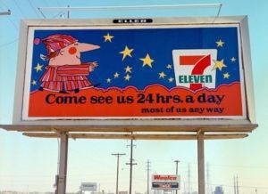 Today, well over half the 7-Elevens are open 24 hours a day. And the average 7-Eleven unit does one-third of its total business on weekends.