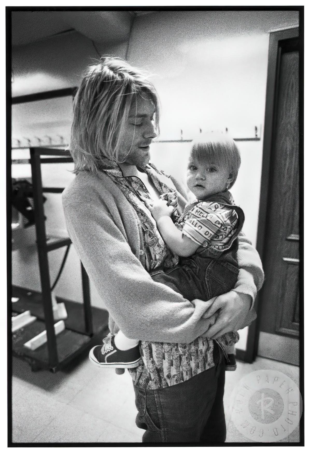“Everybody talks about Kurt as the great musician who was tortured and talented. They talk about his drug addiction and they talk about the dark side of him. But I got to experience another side. This was such a cute moment, playing with Frances. He loved her.” – Kevin Mazur, via Rolling Stone