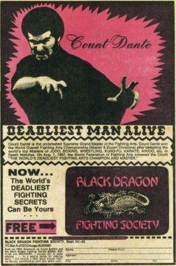 The fearsome man in the ad had his hands fixed in a foreboding position. The man called himself “Count Dante” and the ad said that in 1967, he was crowned “The World’s Deadliest Fighting Master” by the world federation of fighting arts.