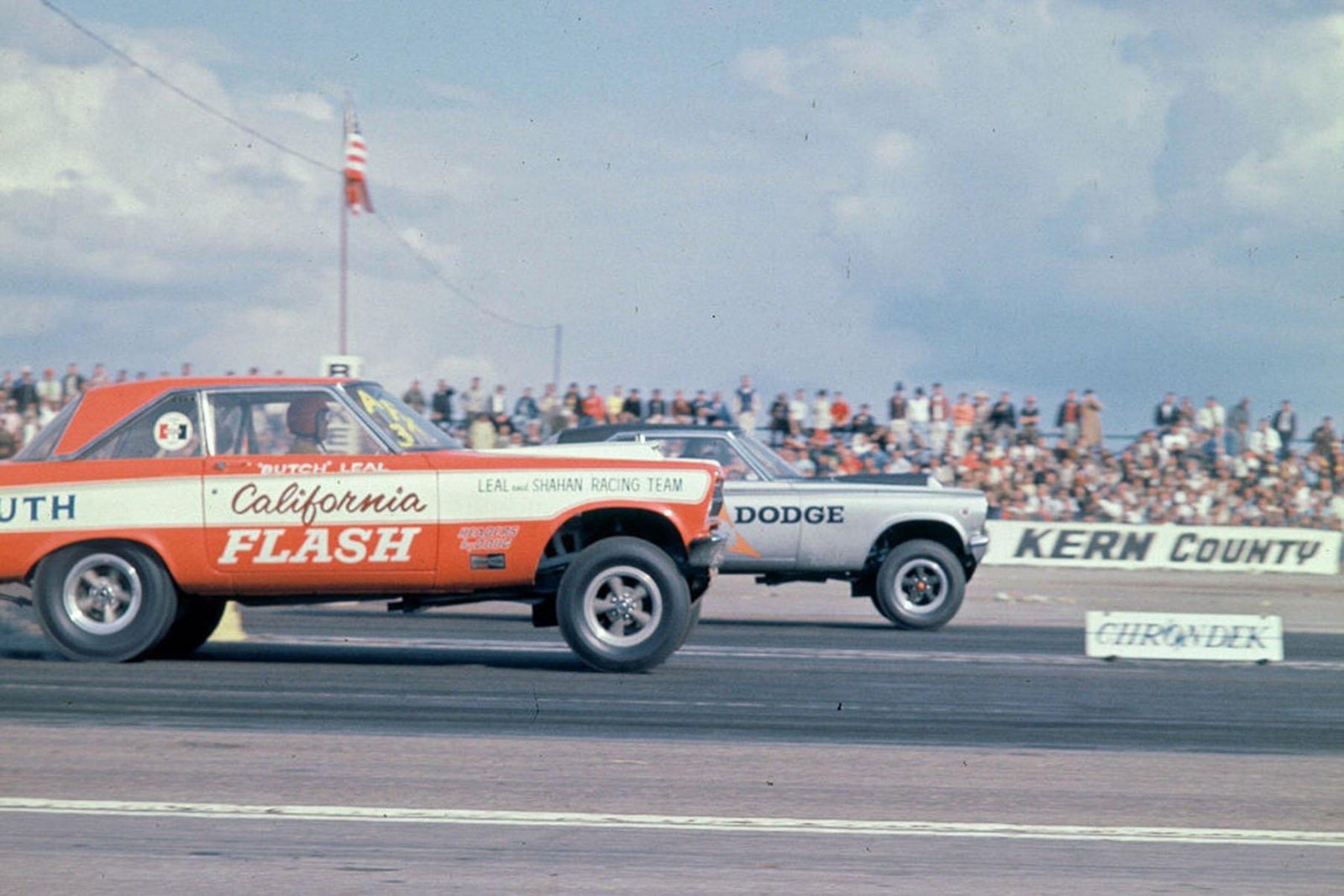 This is my favorite Super Stock car of all time, anywhere, and one of my favorite Super Stock photos. Butch Leal was probably the most successful of the ‘retired’ Chrysler racers who had driven in Pro Stock. He had parked his Ron Butler-built Plymouth Duster that he was running in Pro Stock in favor of this 1965 Plymouth Belvedere, a real Hemi A-990 car that Butler had also built. Remember Super Stock & Drag Illustrated magazine? At the time, they pegged this Plymouth as “the most feared car in Super Stock eliminator.”