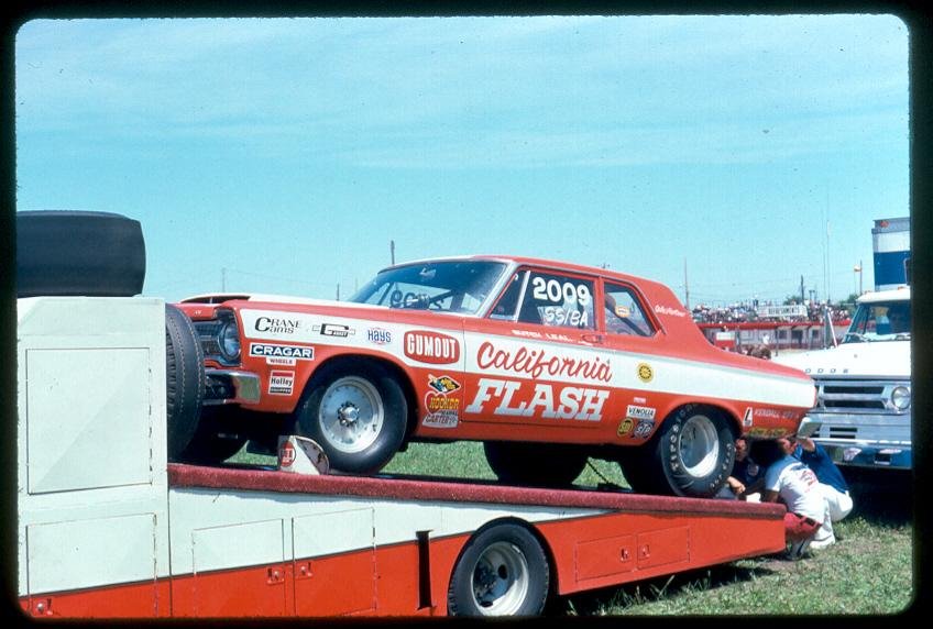 They were right, too. The California Flash raced this Hemi hard, using it to win an AHRA World Championship in Super Stock, the class eliminator at the IHRA Summer Nationals, and finish very high in the points with the NHRA season Super Stock chase. I’d love to own this car. It was the baddest Super Stock anywhere. Leal told me this car was his Pro Stocker reincarnated as a 1965 Plymouth. He would stand this thing on its bumper every time he launched, even though Butler had added a lot of weight to it. It was awesome. I shot it at Indy here, probably in 1974. – Jim Donnelly