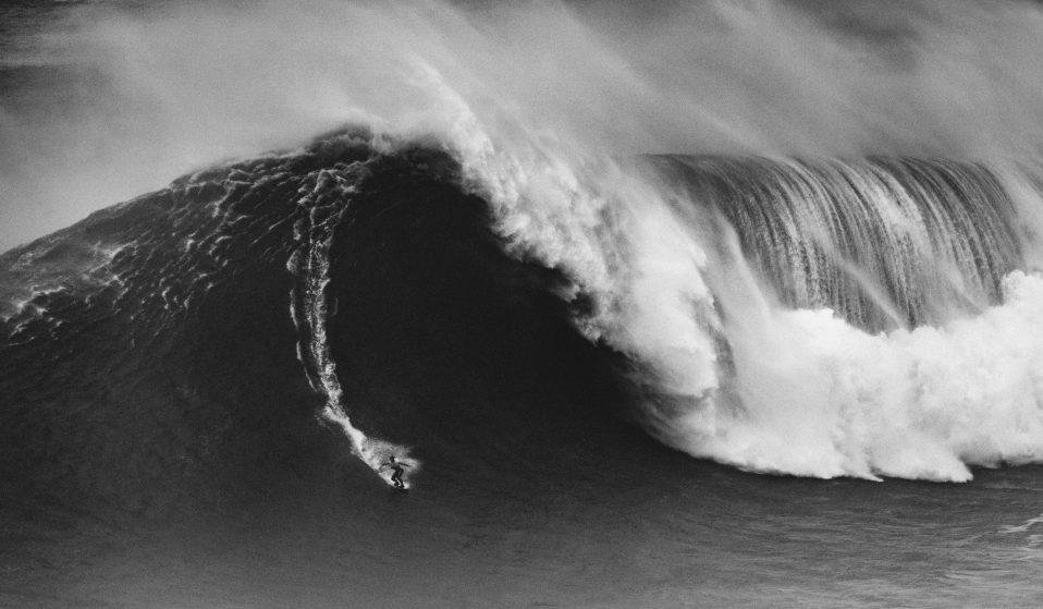 On the morning of Tuesday, February 11, 2020, giant teepee-shaped waves marched into Nazaré, the famous surf break on the west coast of Portugal. They moved in a latticed formation that looked deceptively organized. Only when a jet ski whipped a surfer into them could you see their otherworldly scale. The surfer would drop, drop, drop, and then drop some more in a kind of slow motion that defied the speeds at which they travelled, the bottom of the wave seeming to recede, or the crest of the wave continuing to grow taller – or both. It was spectacular to witness in person. The wave dwarfed each surfer so much they appeared ant-sized. I emailed a phone pic to my mum and wrote, ‘Zoom in to see surfer.’