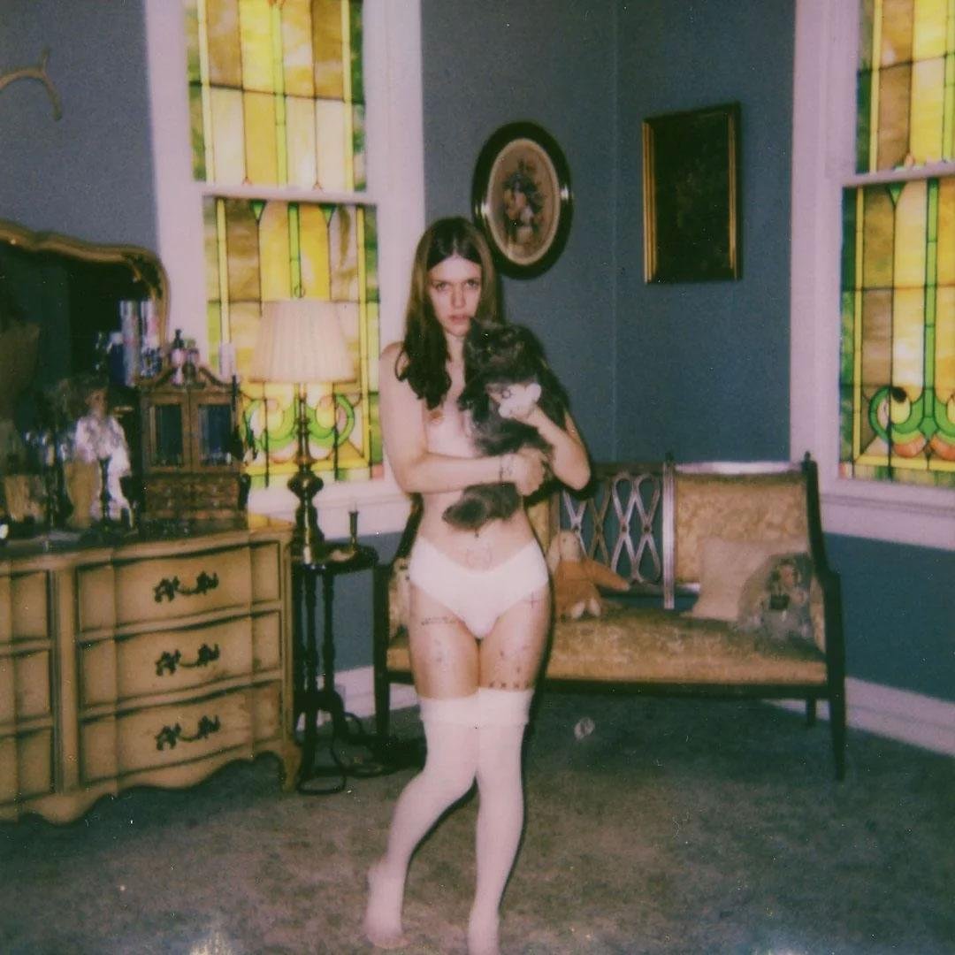 Isolated and unassuming from the outside, the place is filled with the paraphernalia of a creative life that is carefully constructed and expertly art-directed: stacks of VHS tapes (“Gummo,” “Carrie,” “The Best Little Whorehouse in Texas”), old TVs to play them on, creepy dolls with drawn-on face tattoos, dusty books about religion and sexuality, yellowing vintage photographs, animal bones, human teeth and thrift store clothes scattered everywhere. Only the closet full of flowing Victorian nightgowns and Gunne Sax-style dresses in white and cream seems organized.
