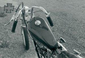 “In the fall of 1969 my friend Chris and I decided to open a retail store selling Chopper parts. We had built and sold 4 custom bikes that year, and all our friends were asking how to buy the parts mail order. Ed Roth published Choppers magazine, which contained ads, including one for AEE Choppers of Southern California. We had purchased parts from them for my first panhead chopper that same year. Deciding on the name CJ Custom Cycle Parts, we made a business plan and went to the bank for a start-up loan. To say the bankers laughed at us would be an exaggeration, but they declined our request. I complained of their shortsightedness to my co-workers at the newspaper and Fran Walling, a fellow artist in the display advertising department, offered to loan me the money from part of her husband’s life insurance settlement. We agreed to pay her 1% more than bank rate on a two-year repayment plan.” – Jeff McCann… read more >