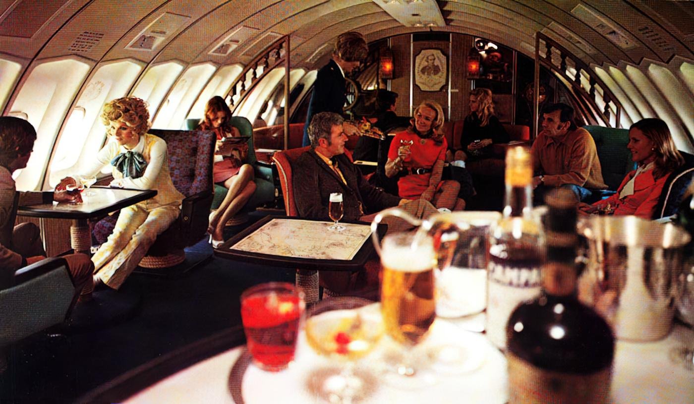 The 1970s was without doubt, a golden age of air travel. It was the era that saw the upper decks of Boeing 747s turn into full-scale cocktail lounges and restaurants for first class flyers. On the lower deck, there were also coach or economy lounges. Continental Airlines had a pub while American Airlines had an infamous piano bar.