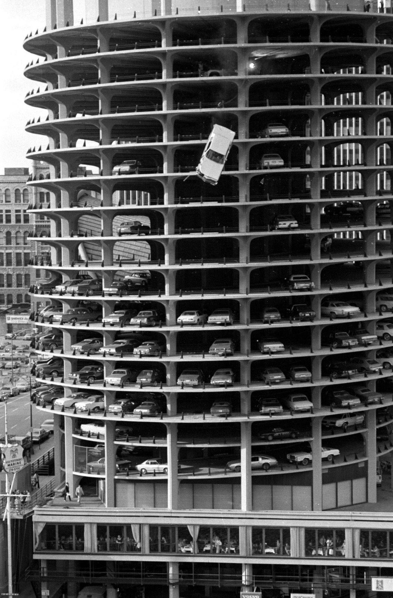 Chicago photographer Val Mazzenga recently passed away and it seems like a good time to celebrate his incredible work, like this exciting shot of Marina Towers being used in an iconic stunt from the Steve McQueen action film The Hunter (1980). H/T >