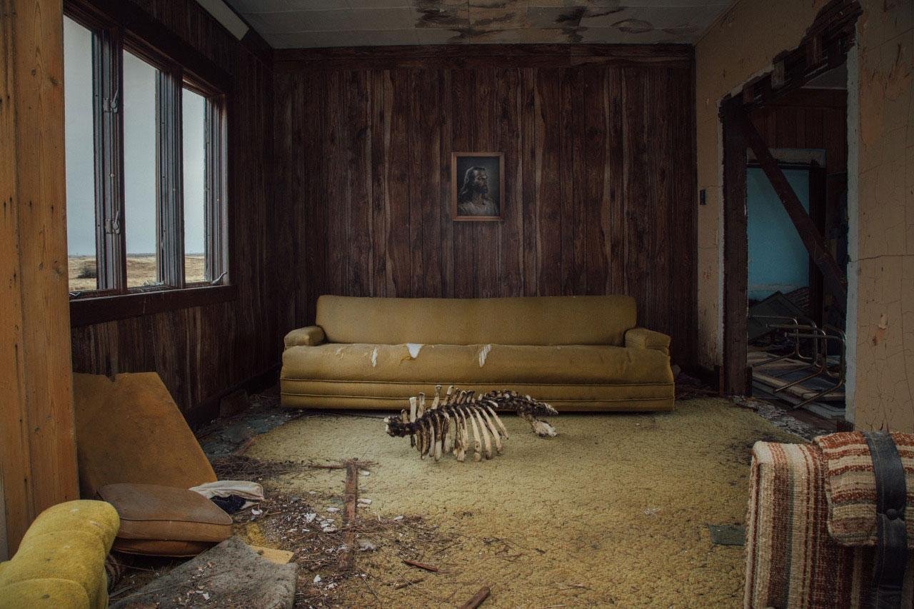 This desert house has clearly been abandoned for some time, but Jesus is still hanging tough, and watching over Bambi’s remains.