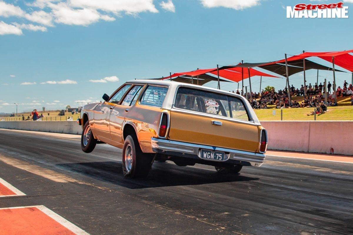 Winning hearts in the Super Street class at Northern Nats 5 drags, Graham Hilton in his stunning 1975 HJ Holden wagon narrowly lost in the