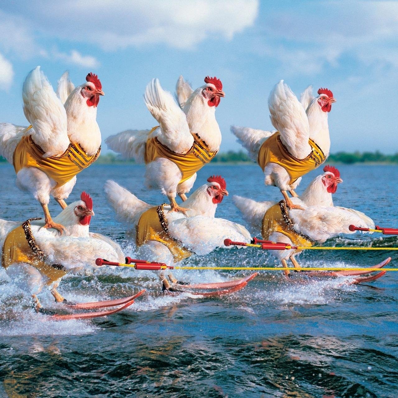 Yeah, we have no idea either, but hey, waterskiing chickens, right?