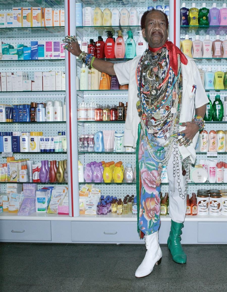Get it? Like Mr. T, but Mr. Z? Anyhoowsers… Zé das Medalhas works in a pharmacy in Copacabana. His bracelets, necklaces, medals, and rings were presents from friends and admirers. They take him three hours to put on each morning, and he never forgets their order. i-D magazine 2007. H/T>